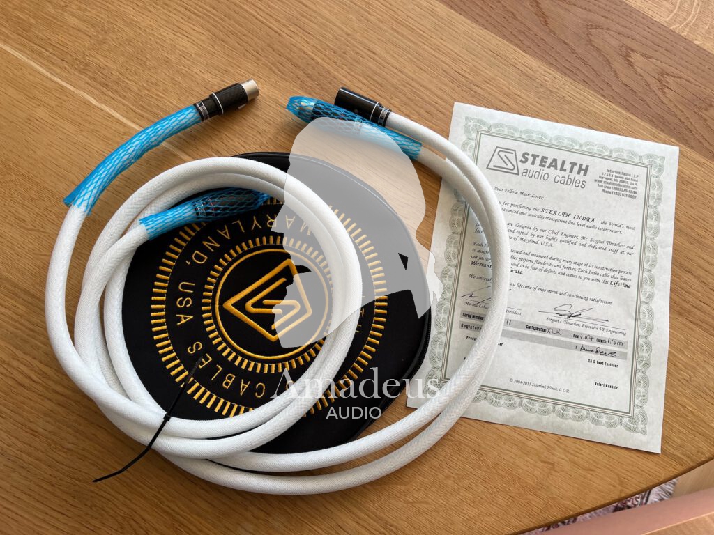 STEALTH AUDIO CABLES OUTLET Stealth Indra V.08+ XLR 1,5 meter pair unused original bag and certificate included. The Certificate is also the lifetime warranty paper.