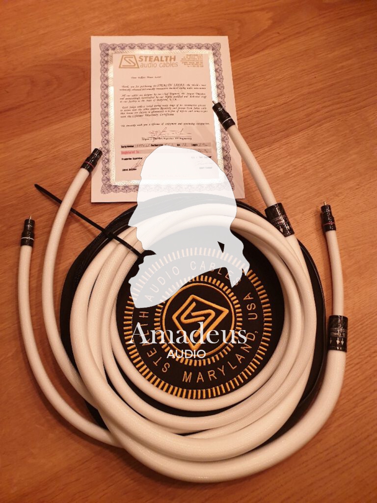 STEALTH AUDIO CABLES OUTLET Stealth Sakra V.12 2.5 meter pair RCA unused original bag and certificate included. The Certificate is also the lifetime warranty paper.